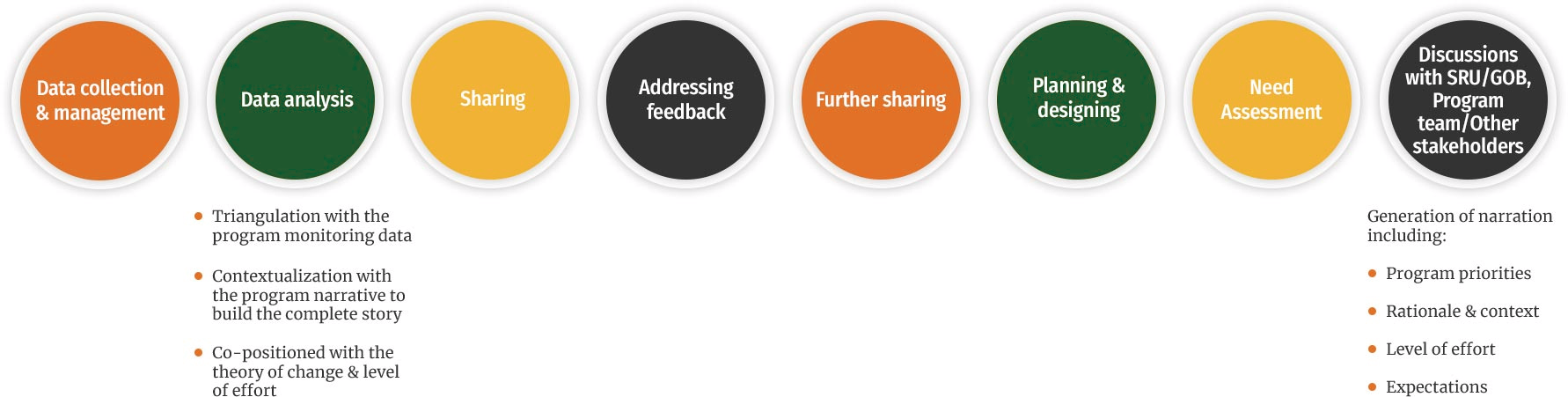 Our objective is to make the system more data-hungry and efficient. This helps improve the data usage qualitatively as well as quantitatively – concluding into data-driven decision-making. The continued outcome measurement entails output and outcome data which is sample-based and continued for quick turn-around. The data is collected and analyzed by an independent team of experts and field staff.